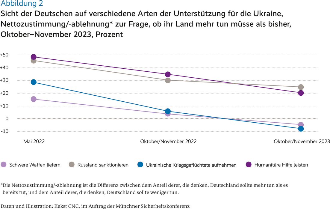 Leonard Schütte, „Wer A sagt, muss auch B sagen: Die Widersprüchlichkeiten der Unterstützung in der deutschen Bevölkerung für die Ukraine“, München: Münchner Sicherheitskonferenz, Munich Security Analysis 1, Februar 2024, https://doi.org/10.47342/GNMB4087.